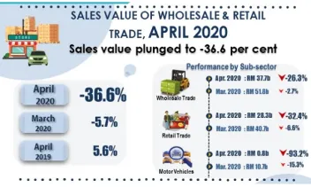 Malaysia's retail sales down 32.4% in April